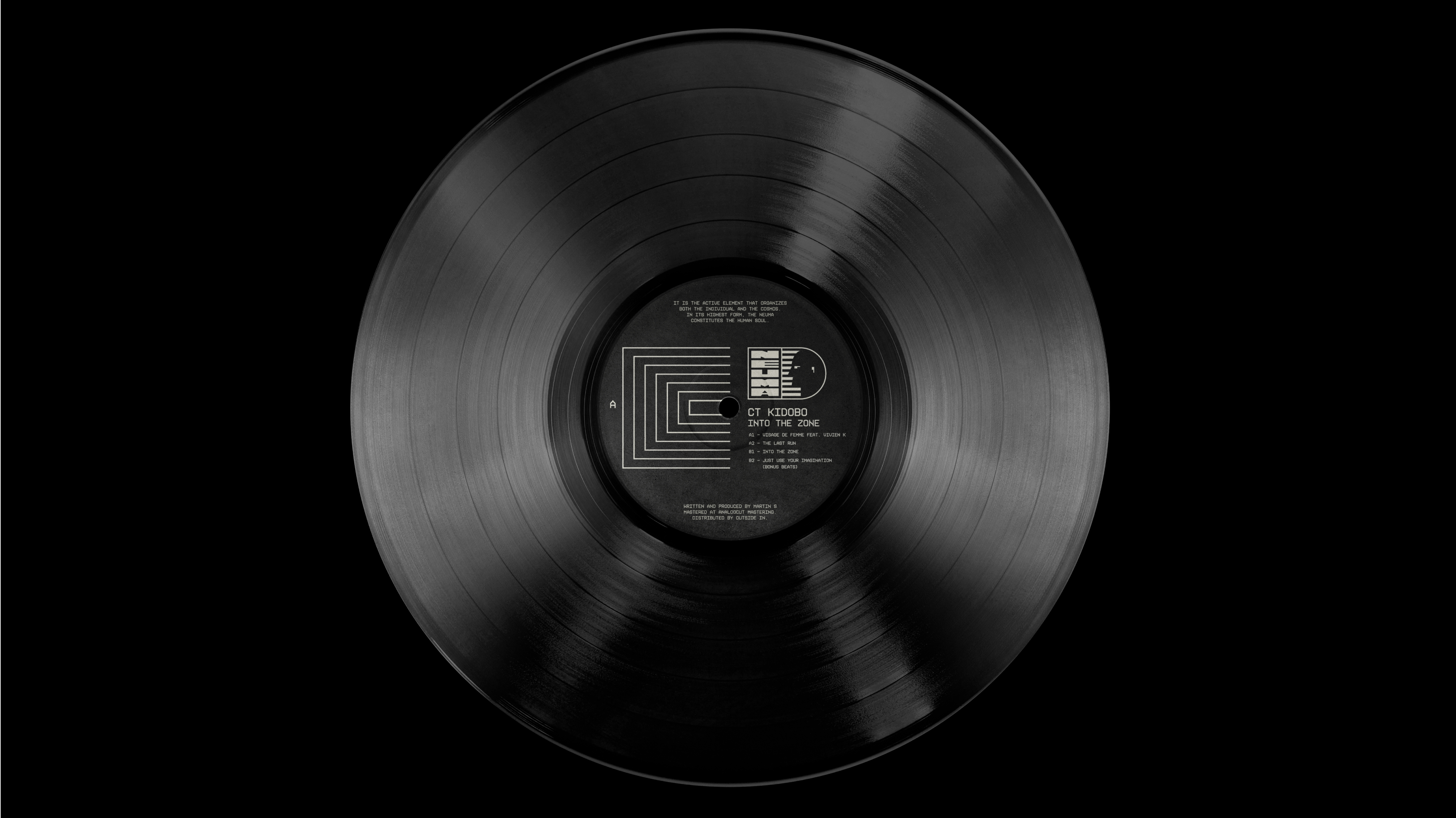 We handled the visual identity. and the first vinyl album for NEUMA, a new music label. NEUMA represents the breath of life that animates the void, an active element that organizes both the individual and the cosmos. Our project aimed to capture this profound concept through visual design.