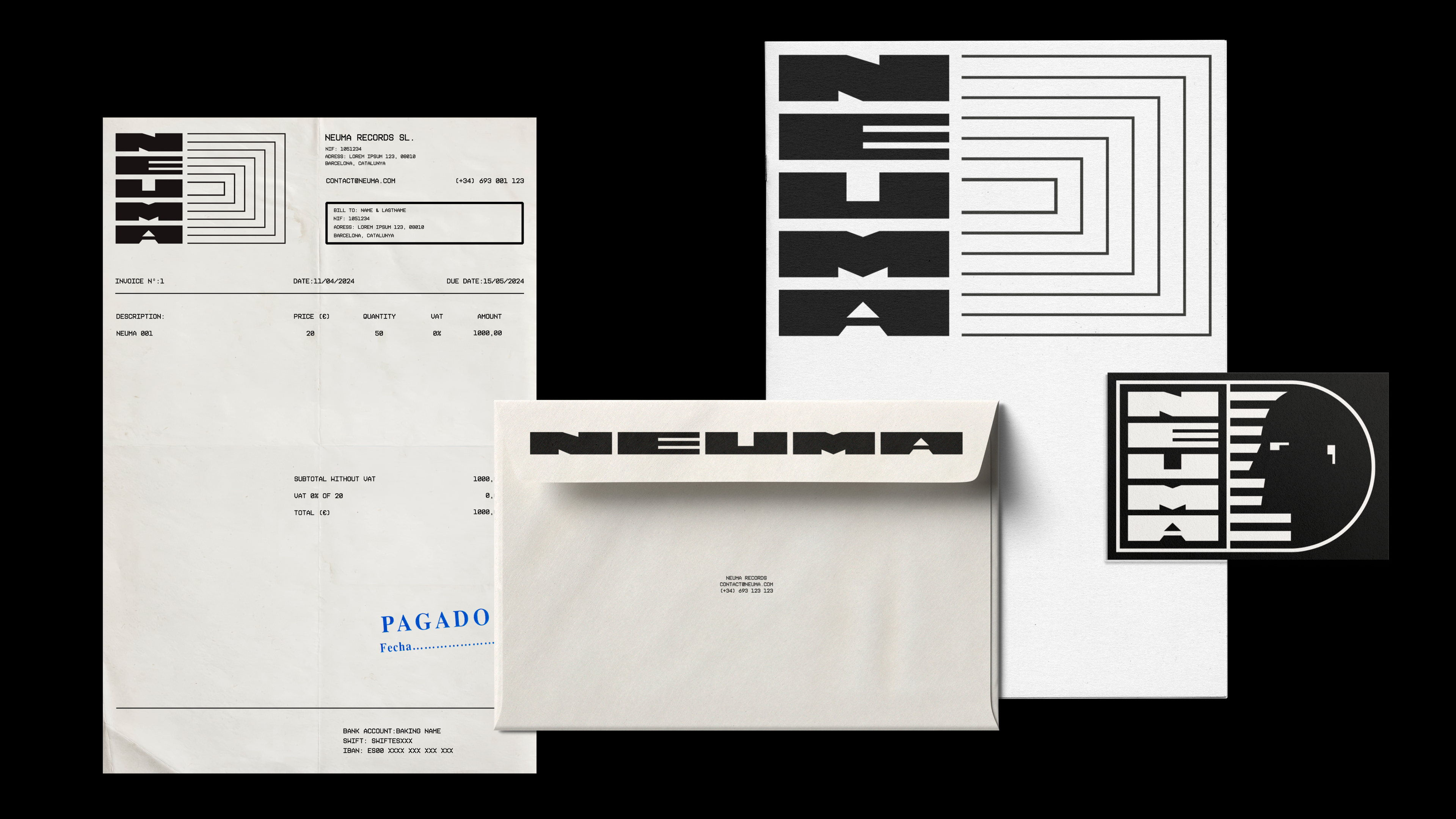 The new branding includes a striking logo and a cohesive visual identity that reflects the label's artistic vision. The first vinyl album's design complements this identity, combining modern aesthetics with timeless elements. We worked closely with NEUMA's team for five weeks, ensuring that the design aligns with their philosophical and artistic goals. This project positions NEUMA as a unique and innovative presence in the music industry, blending creativity and meaning seamlessly.